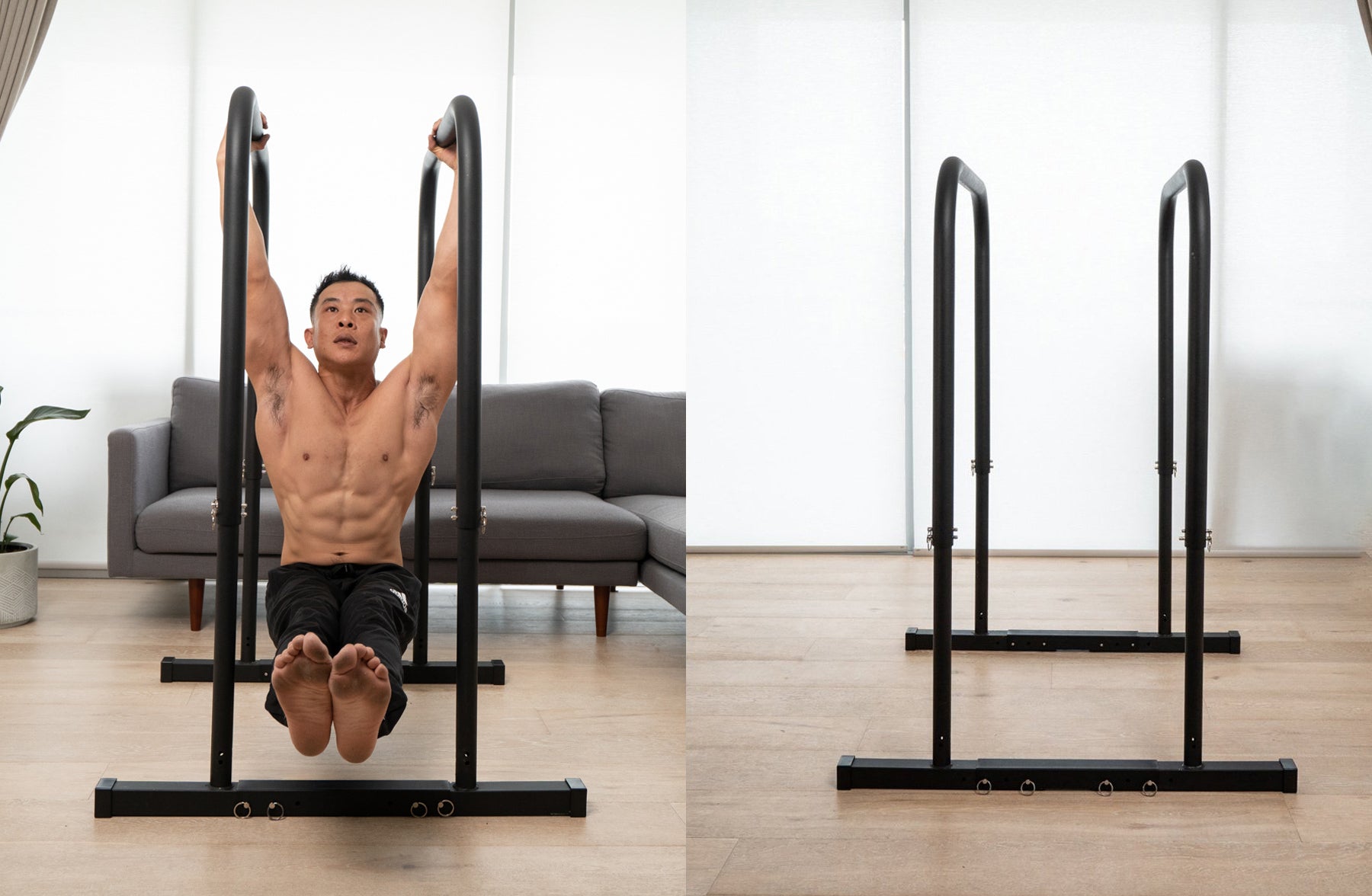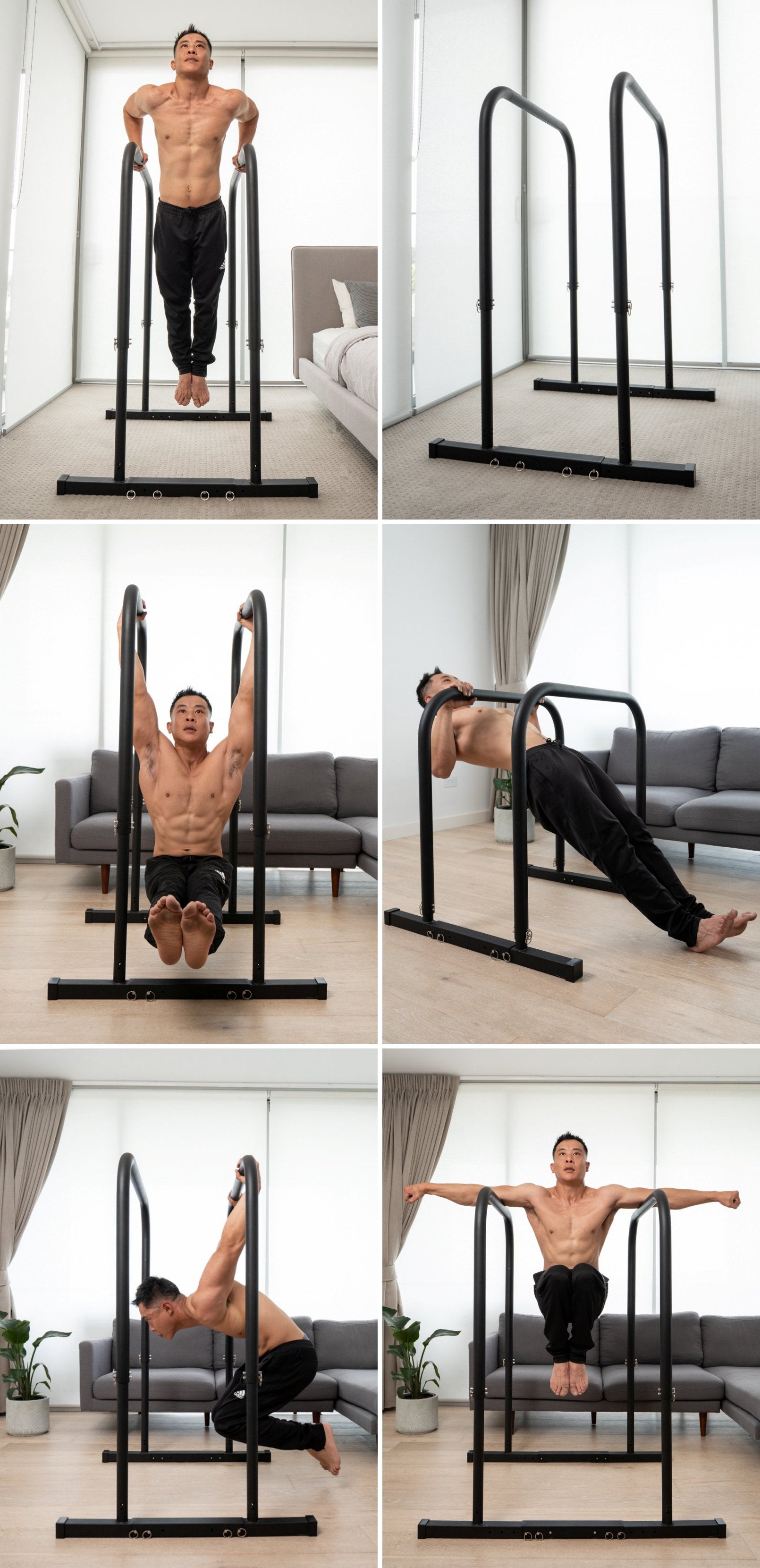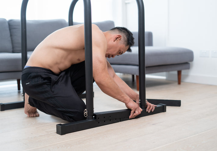 C$365.00 Compare to B-Bars ProMeet our height- and width-adjustable parallel bars. Build complete upper body and core strength - perform chin-ups, pull-ups and leg raises from our top height (129cm), and dips, levers and rows from our bottom height (91cm). Width-adjustable (42cm to 61cm) for all shapes and sizes. Suitable for any experience level; perform feet-assisted dips and chin-ups if you are just getting started, or strict muscle-ups if you are an advanced user. Fast setup, completely freestanding and stores flat after your workout ends.